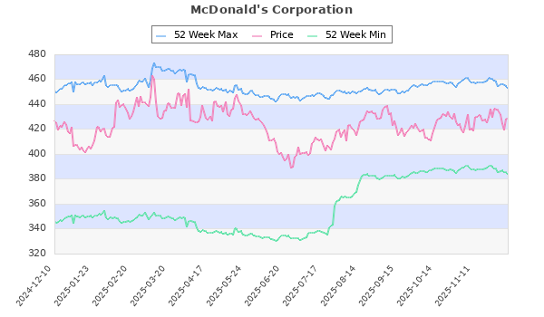 McDonald's Corporation (NYSE:MCD) Food 428.12 383.74 452.83 64 10.27 0.00 26.44 0.00 2.40 Sep, Dec, Mar, Jun,