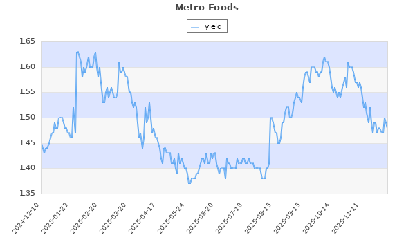 Metro Foods (TO:MRU) Food 99.88 87.76 109.20 57 1.48 0.00 21.59 1.13 1.48 Jun, Sep, Nov, Mar, May,